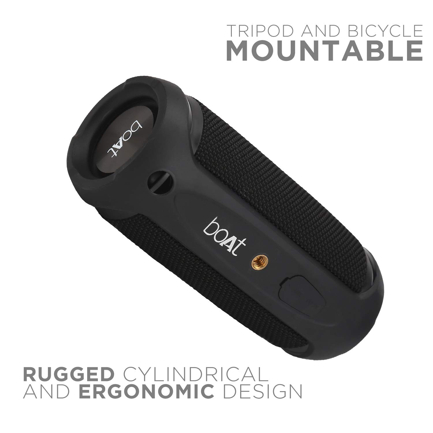 - Stone SpinX 2.0 boasts of an ergonomic, portable and cylindrical design made to battle the elements with IPX6 Water resistant and a shock proof design made from ABS & Fabric Grill