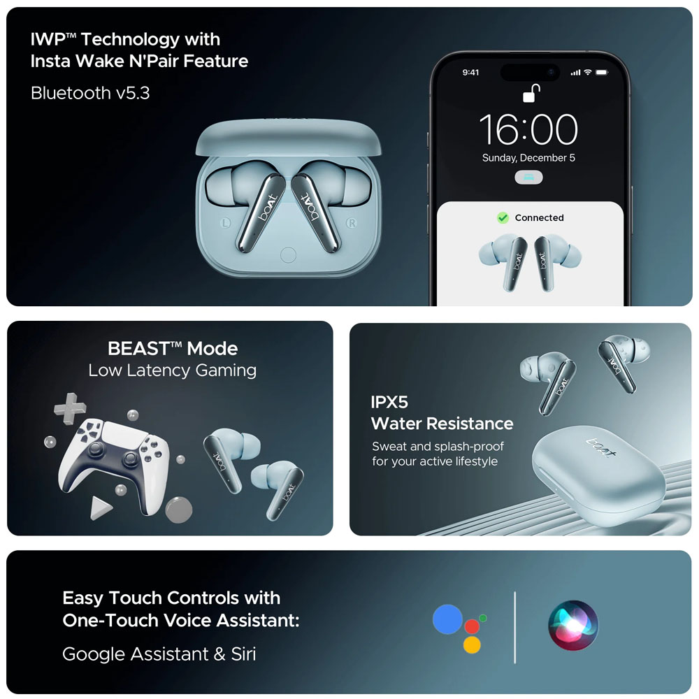 - Boat Earbuds Airdopes 280 ANC Mint Blue