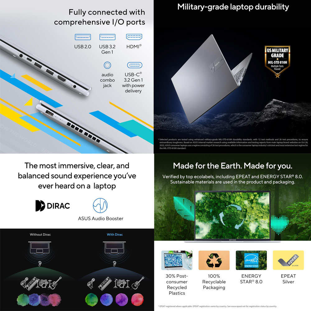 - Software Included : MyASUS||ScreenXpert||GlideX||Audio Technology/Speakers : SonicMaster || Built-in speaker || Built-in array microphone