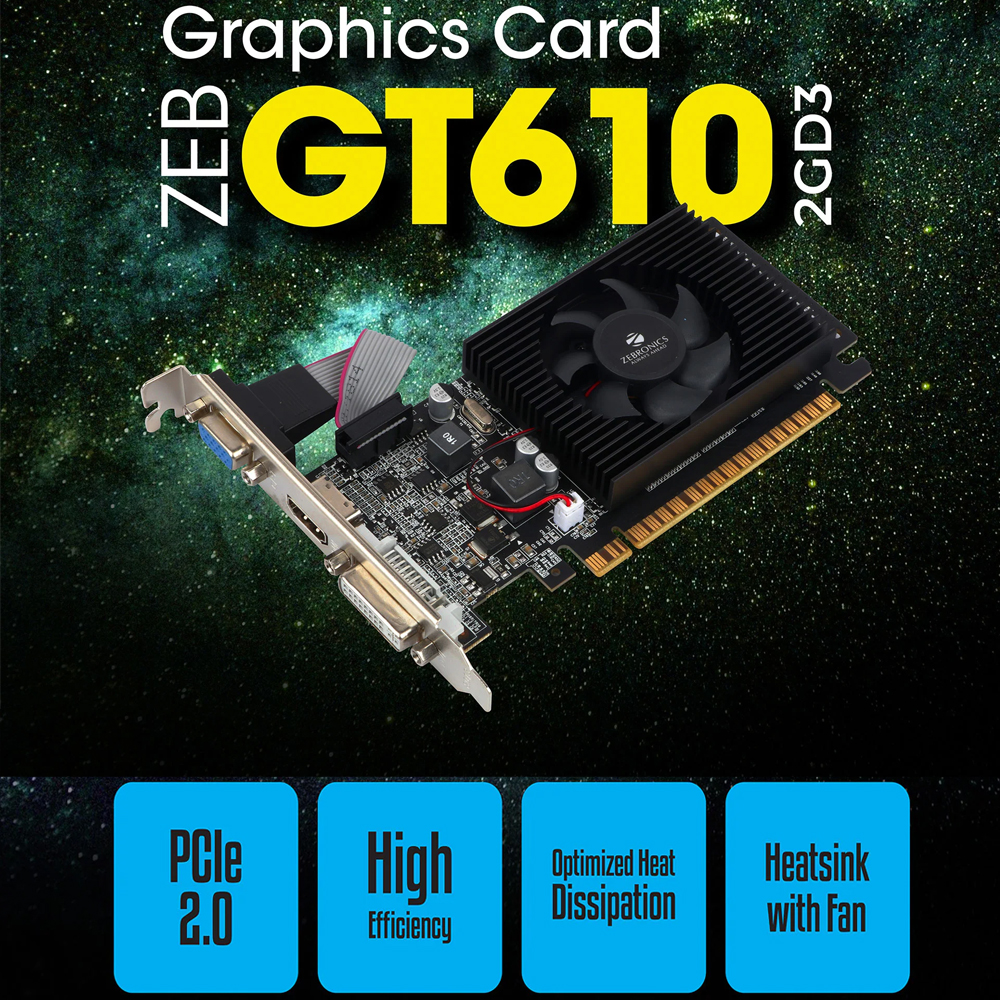 - Zebronics Graphics Card Nvdia GT610 2GB DDR3